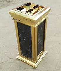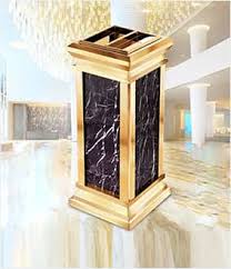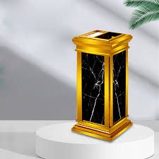 4.1.Tính thẩm mỹ và sang trọng:Thùng rác khách sạn được thiết kế với sự kết hợp giữa khung inox mạ vàng sáng bóng và các tấm đá hoa cương ốp xung quanh, tạo nên vẻ ngoài lịch sự, đẳng cấp, phù hợp với không gian nội thất hiện đại.