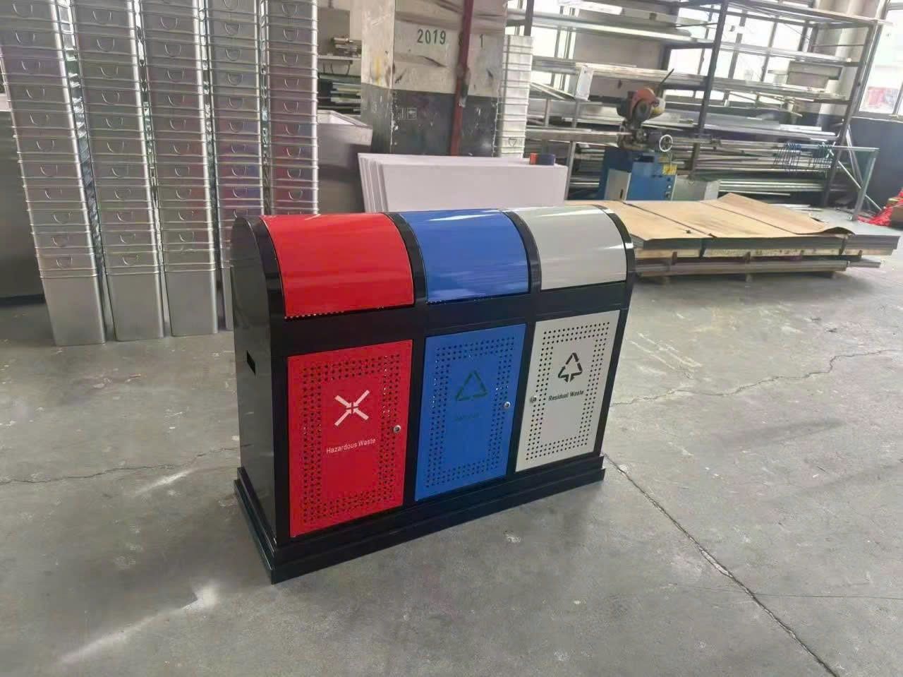 6.Ứng dụng của thùng rác sắt 3 ngăn nắp bập bênh 1220 x 480 x 900 mm :
